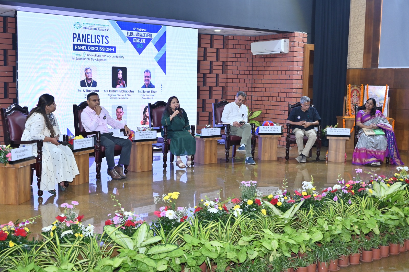 KIIT School of Rural Management (KSRM) hosted the 6th National Rural Management Conclave on 6th September 2025. The conclave aimed to create a dynamic platform bringing together leaders from development organizations, corporates, academia, and civil society to deliberate on the theme “Innovations, Technology Adaptations, Risk Management and Accountability in Sustainable Development Initiatives” and “Human Resources in CSR and Rural Transformation.”