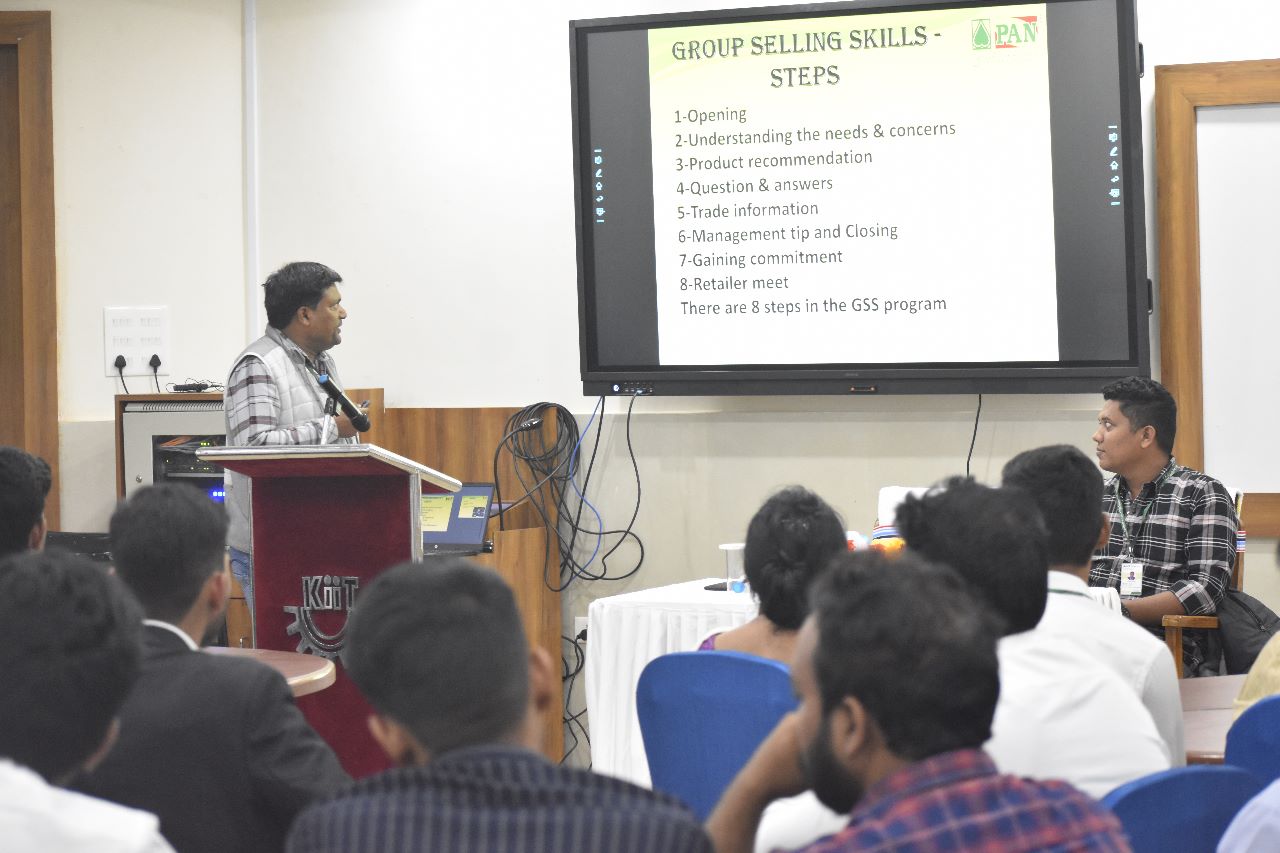 In his talk, Mr. Bibhudatta Mishra spoke about channel management and group selling skills. He shared that it is very crucial to understand the weakest link in the channel and focus on strengthening it by extending the reach and gaining more depth. He deliberated on two skill sets i.e. effective listening skill and making the right kind of pitch. Based on his expertise in the sector, Mr. Mishra elaborated the different steps involved in the group selling skills. He then shared about the scope in the input industry. Mr. Mishra also emphasized that hard work and long term commitment are key to success in the sector.